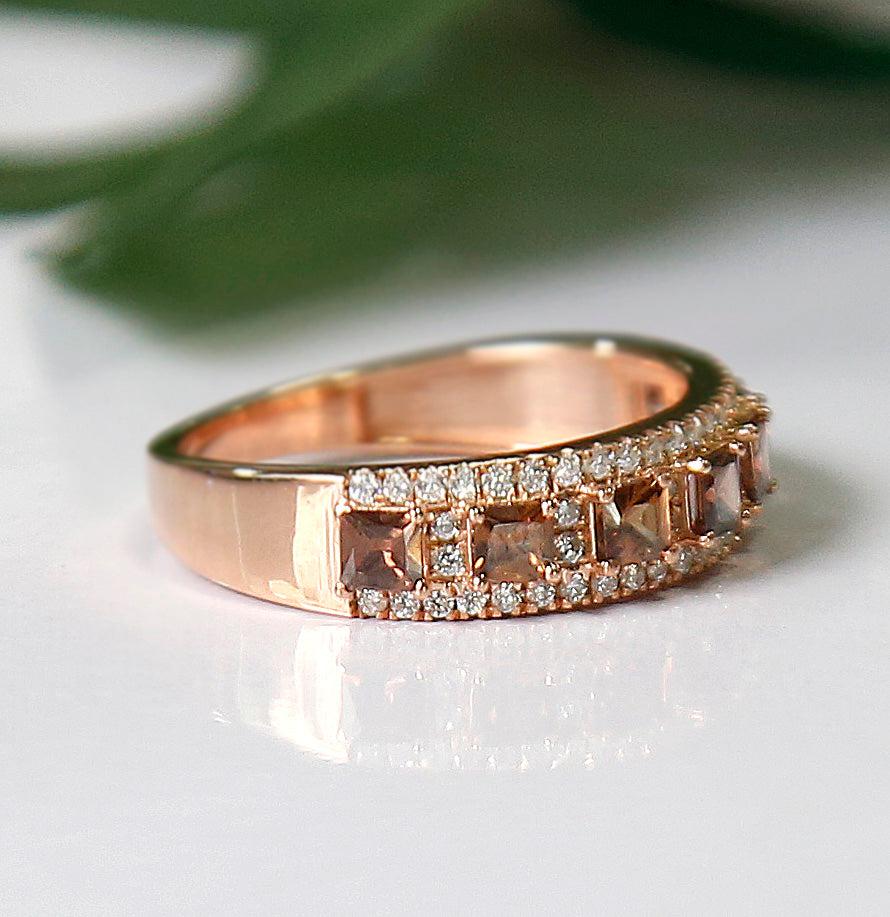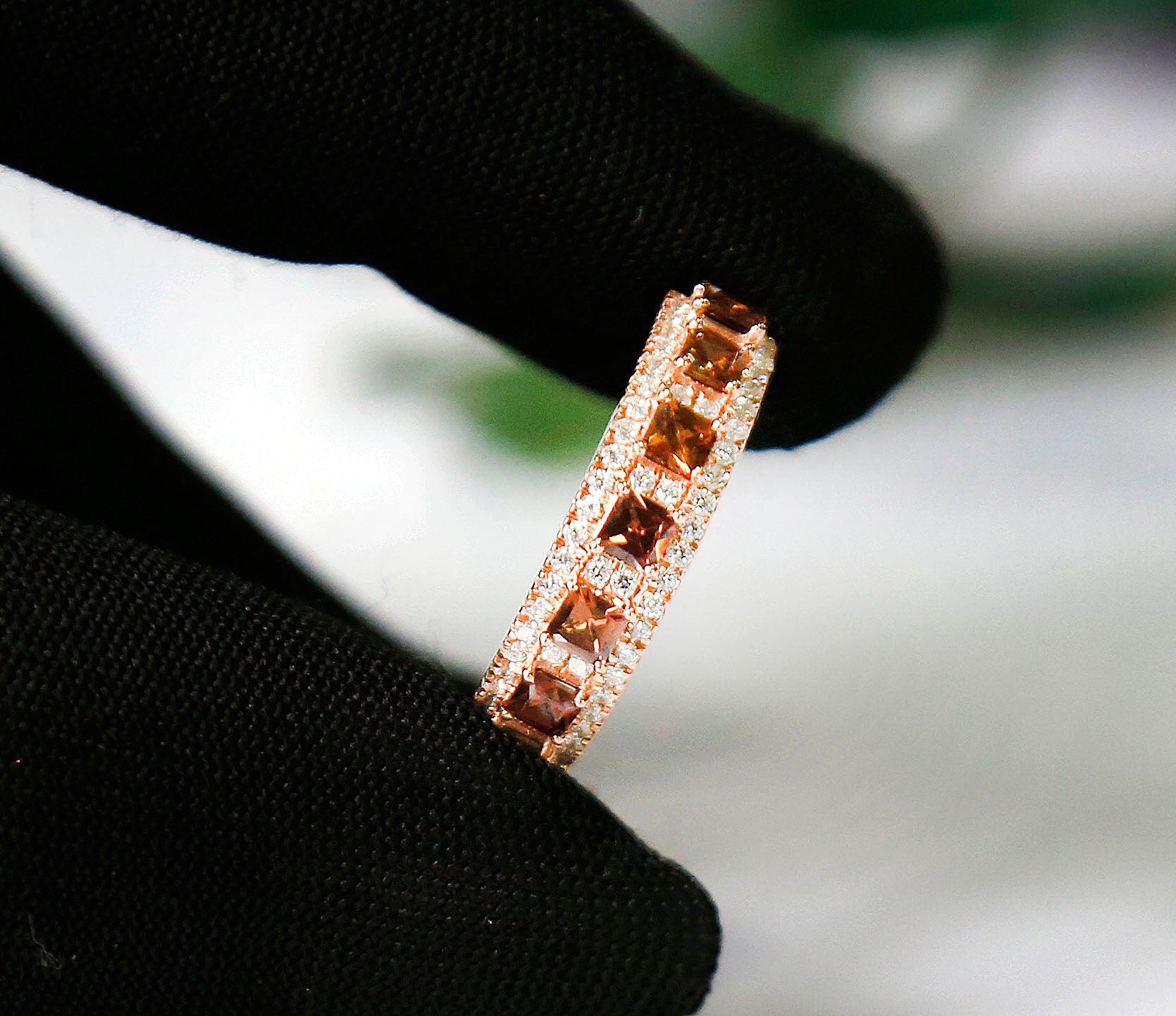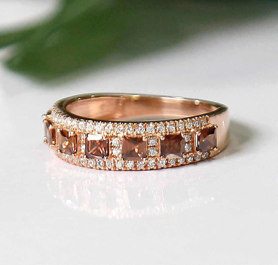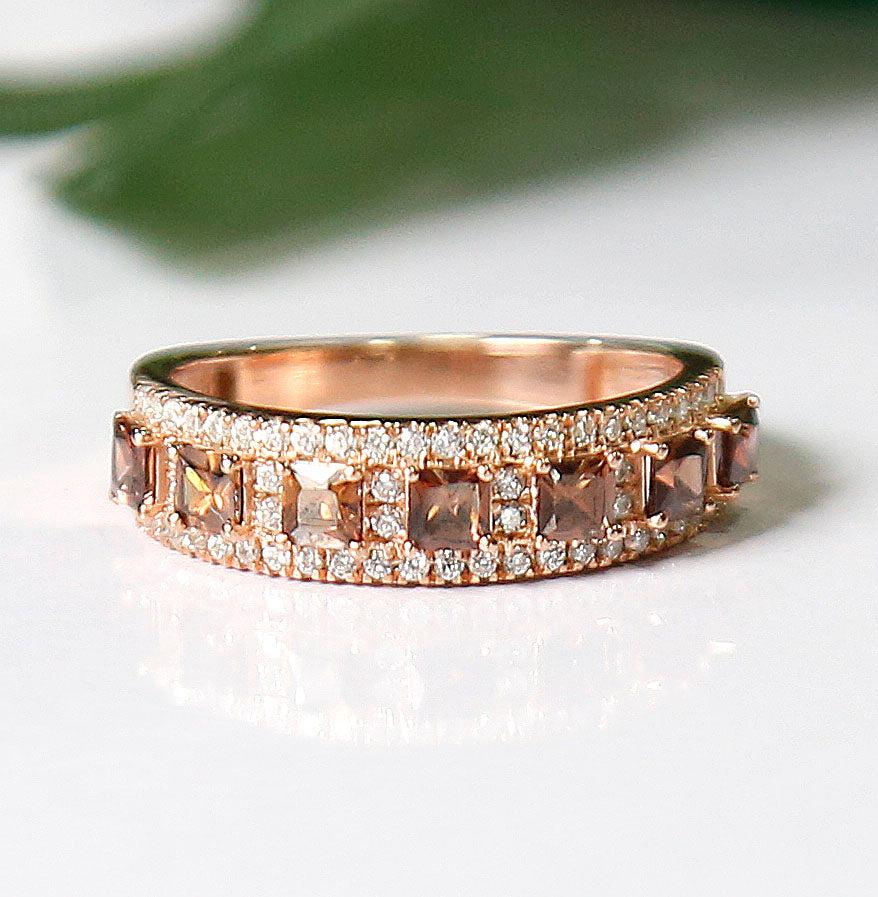 Princess Cut Champagne Diamond Proposal Band Ring in 14K Rose Gold Over - Statement Ring