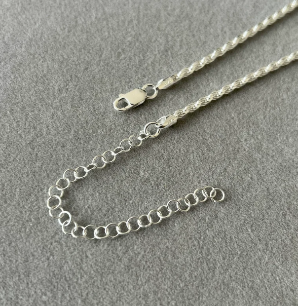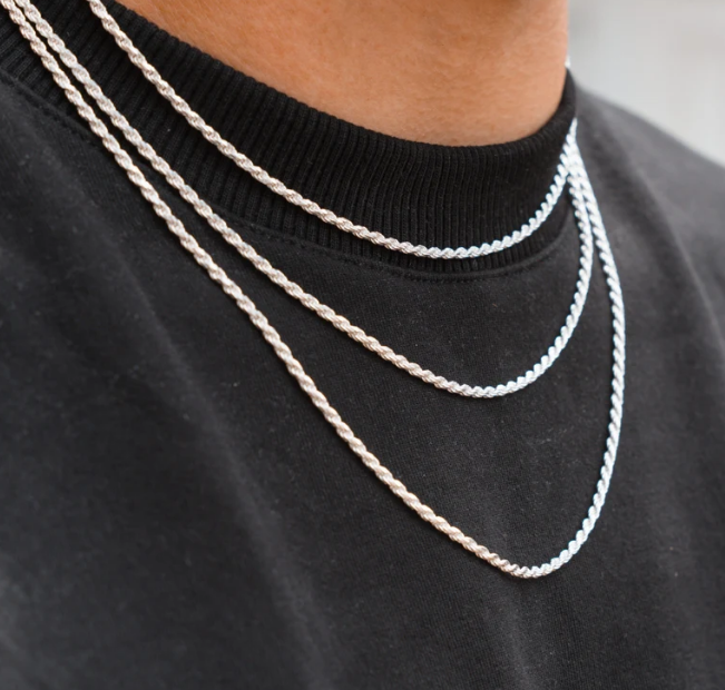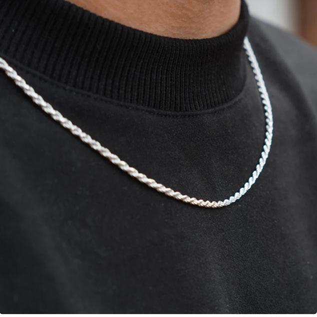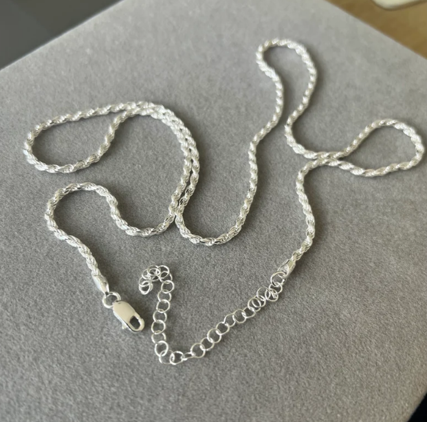 Silver Rope Chain Mens 2.5mm Rope Chain Necklace 925 Sterling Silver Chain For Men